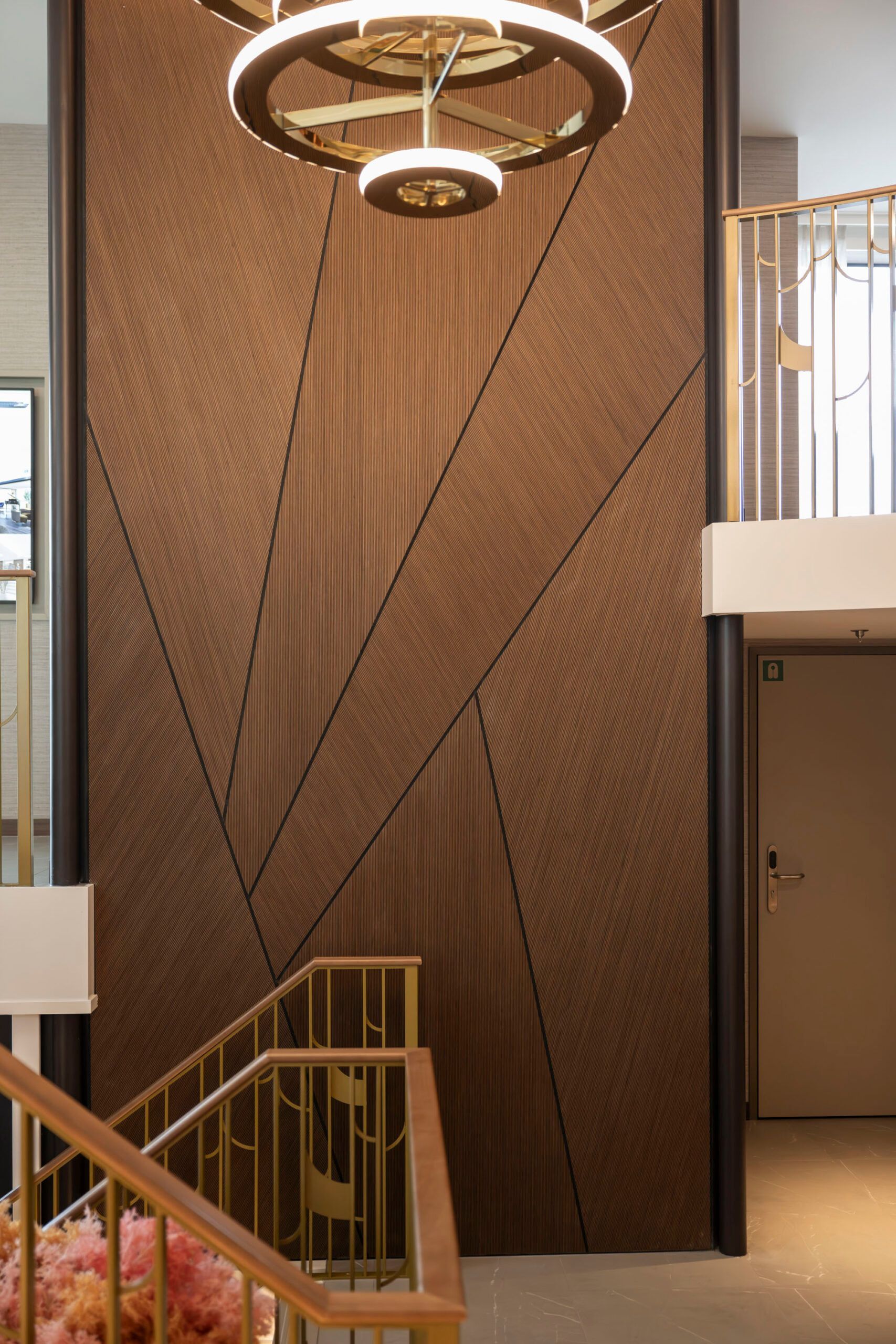 To achieve a natural feeling, round shapes and flowing lines are used. The playful effect created an attractive and ergonomic interior to The Grill.